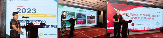 义乌工商职业技术学院图书馆馆长朱小香作了《数智驱动下的图书馆服务模式创新》报告,宁波职业技术学院图书馆馆长戚音作了《从校园到地方阅读生态再构建》报告,浙江商业职业技术学院图书馆馆长胡宇梁作了《高职院校图书馆推进“质量型”发展的思考与实践》报告,三位馆长分别向代表们介绍和分享了本馆建设发展与业务实践等的相关经验与思考。