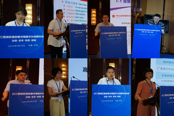 李伟平在致辞中介绍了宁波大学及宁波大学图书馆的基本情况,他强调:“推进教育数字化,建设全民终身学习的学习型社会、学习型大国”写进了党的二十大报告,这为新时代进一步发展数字化指明了方向。图书馆要加强数字化转型发展,提高文献资源利用率,实现图书馆智慧化。李新碗在致辞中表示,“数字化转型正在推动社会全面变革,教育领域的数字化转型也正在快速推进。高等教育数字化旨在通过全面和彻底的数字化转型,形成数据驱动、人技结合、跨界开放的新型教育生态,以数字化转型赋能高等教育内涵式发展?!彼衔际楣菔只谋局适且杂没行模允菸?,能够迭代技术,快速感知用户需求的敏捷灵活的生态型组织。吴晨提出在党的二十大报告中强调的要“推进教育数字化,建设全民终身学习的学习型社会、学习型大国”的背景之下,“高校图书馆理当乘势而行,响应国家数字化战略的号召,以数字化发展为旗帜,紧跟新技术、新趋势,实现以虚实融合为特征的图书馆业态重塑。”