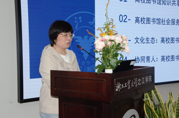浙江工业大学之江学院副院长王林祥,浙江省高校图工委副主任、杭州电子科技大学图书馆馆长徐明出席会议并致辞。王林祥介绍了浙工大之江学院数智赋能的条件下,图书馆,在服务师生,社会合作、开拓创新方面所取得的成绩,强调,构建基于数据驱动、用户导向、动态可调的新型评价体系,是实现图书馆精准服务与可持续发展的关键路径;同时,深化与政府、企业、社区和教育机构的跨界协作,将有助于拓展服务边界,释放文化资源的社会价值。徐明在致辞中指出,当前,人工智能、大数据、区块链等新兴技术正深刻重塑信息生态与知识服务格局。图书馆作为知识中枢与文化灯塔,必须主动拥抱变革,在科学评价与开放合作中寻找新动能。