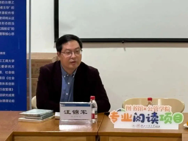 10 月 29 日下午,浙江工商大学图书馆携手公共管理学院举办了一场主题为“数字时代的经典治理理论”的学业下午茶活动。公共管理学院院长汪锦军教授莅临现场,以经典著作《公共事物的治理之道》为切入点,为同学们带来了一场关于数字化时代公共治理理论的深度分享,现场气氛热烈,同学们收获颇丰。主讲人简介